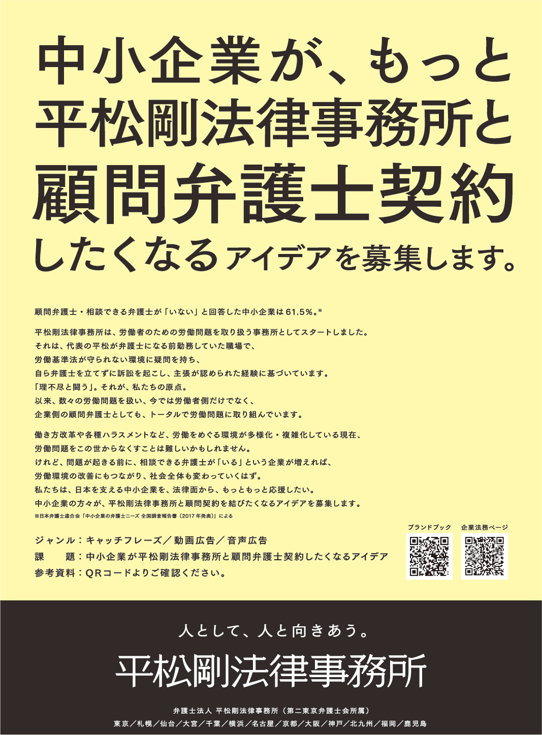 平松剛法律事務所は、株式会社宣伝会議が主催する「第63回 宣伝会議賞」の一般部門に課題協賛することをお知らせします。